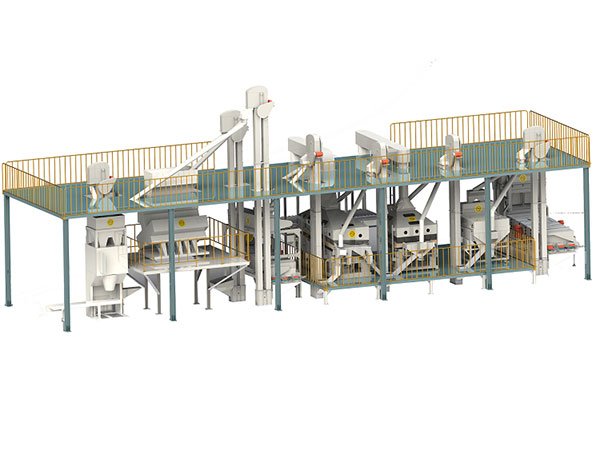 Máquina de limpieza de pantalla de aire (para eliminar el polvo y las impurezas ligeras) ------- Separador magnético (para eliminar los terrones) ----- Pedradora (para eliminar las piedras) ---- Gravimétrica ( para eliminar el materia mohosa y dañada) ------ Clasificadora (para separar el material en diferentes tamaños) ---- Selector de color (para separar el material de acuerdo con el color diferente) ---- Máquina de embalaje (para empacar el materia en bolsas)