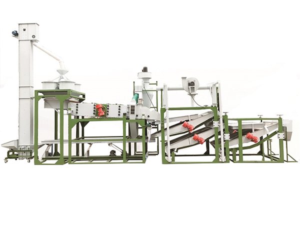 3. Elevador (alimentación de semillas de girasol) --- Descascarado (quita la cáscara de la semilla de girasol) --- Vibrador (separe la cáscara de la semilla --- Mesa de gravedad